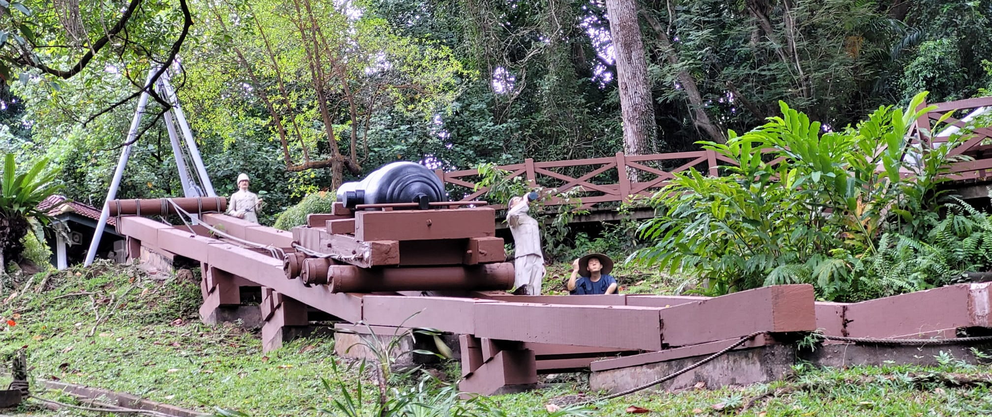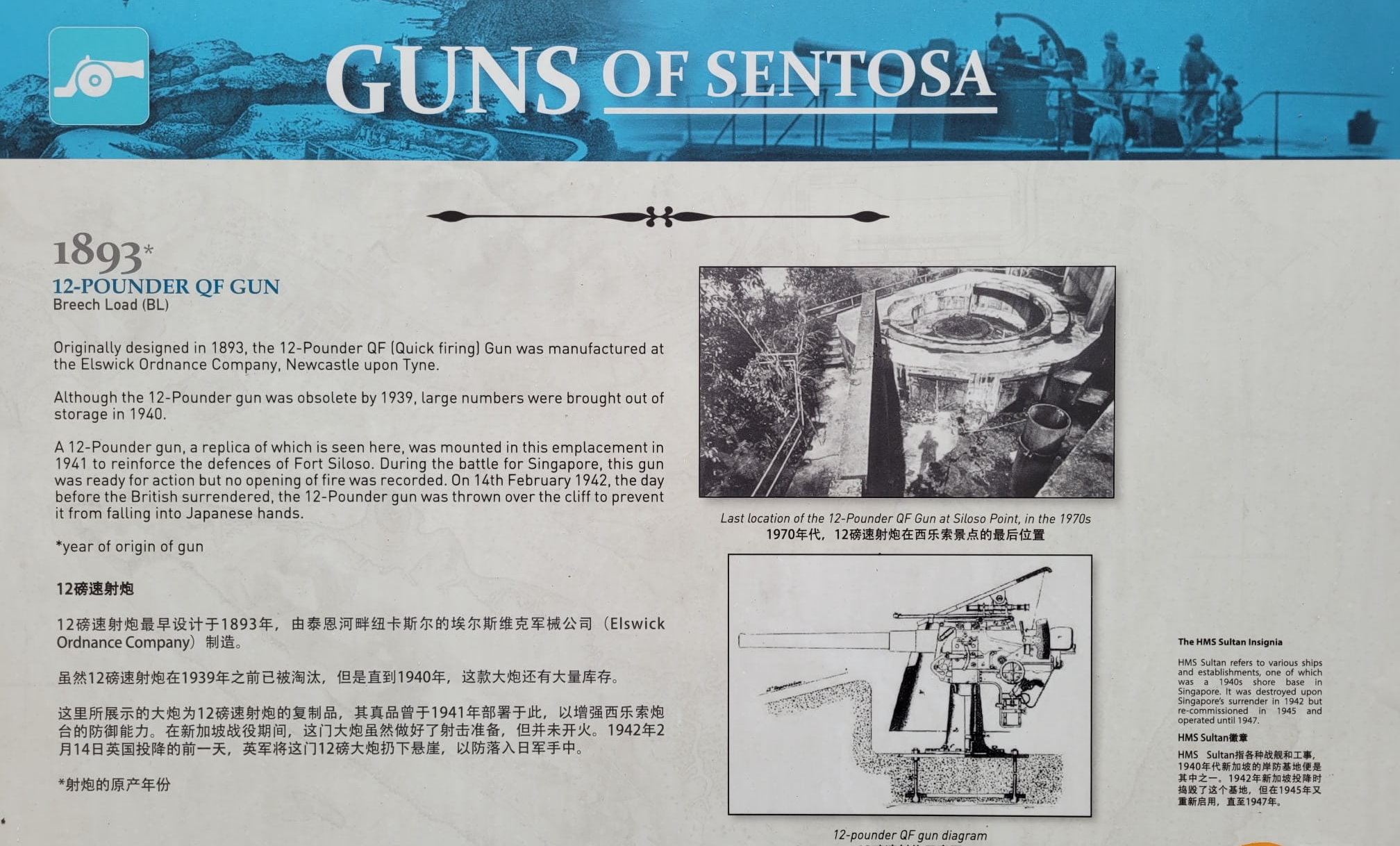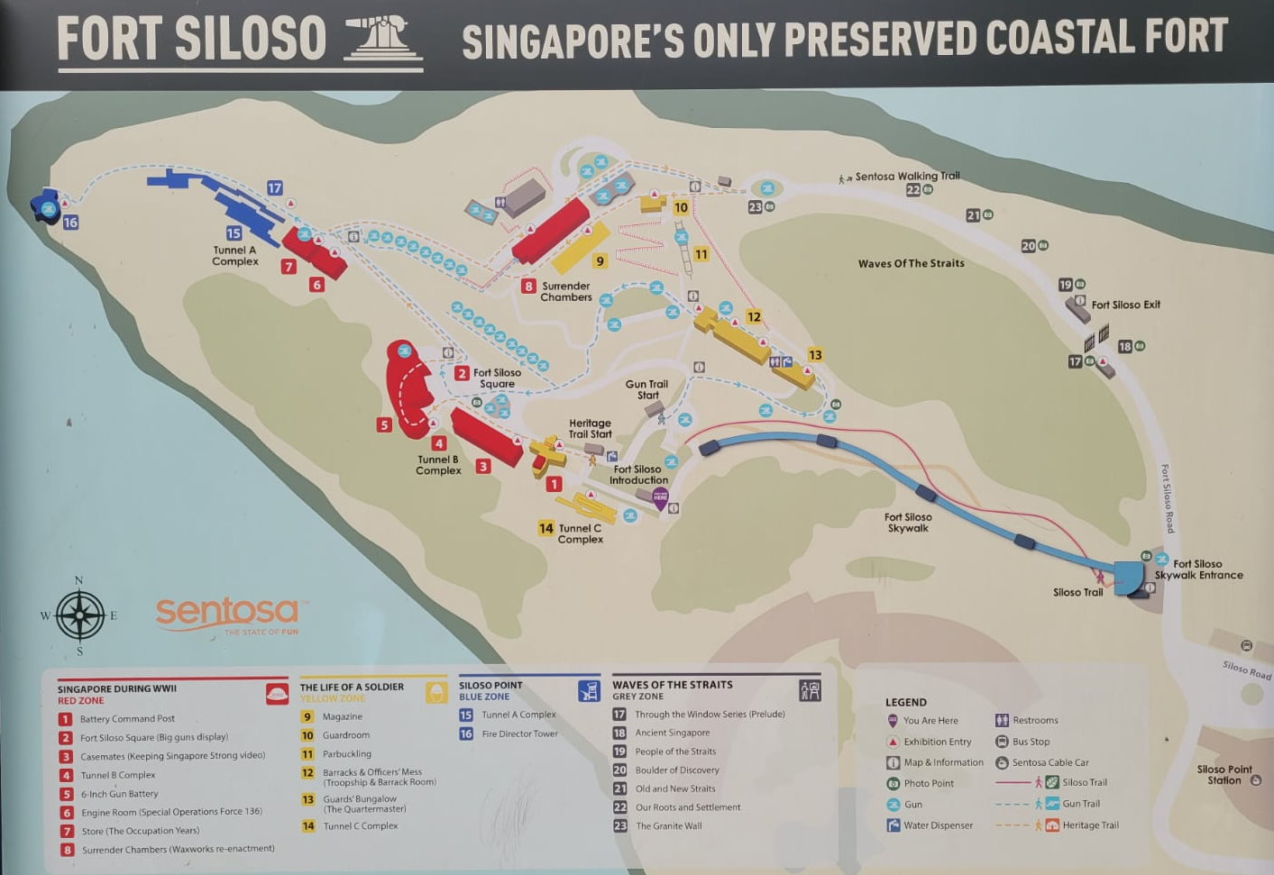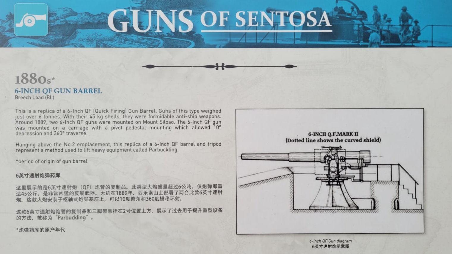 As part of the planned fortifications, Mount Siloso’s top was blown off to flatten it for the installation of coastal-artillery gun platforms. By the 1880s, several gun batteries were located on Mount Siloso and Mount Serapong (facing north towards mainland Singapore on Sentosa’s northern coast) on Pulau Blakang Mati, becoming a stronghold of British naval defences in Singapore.