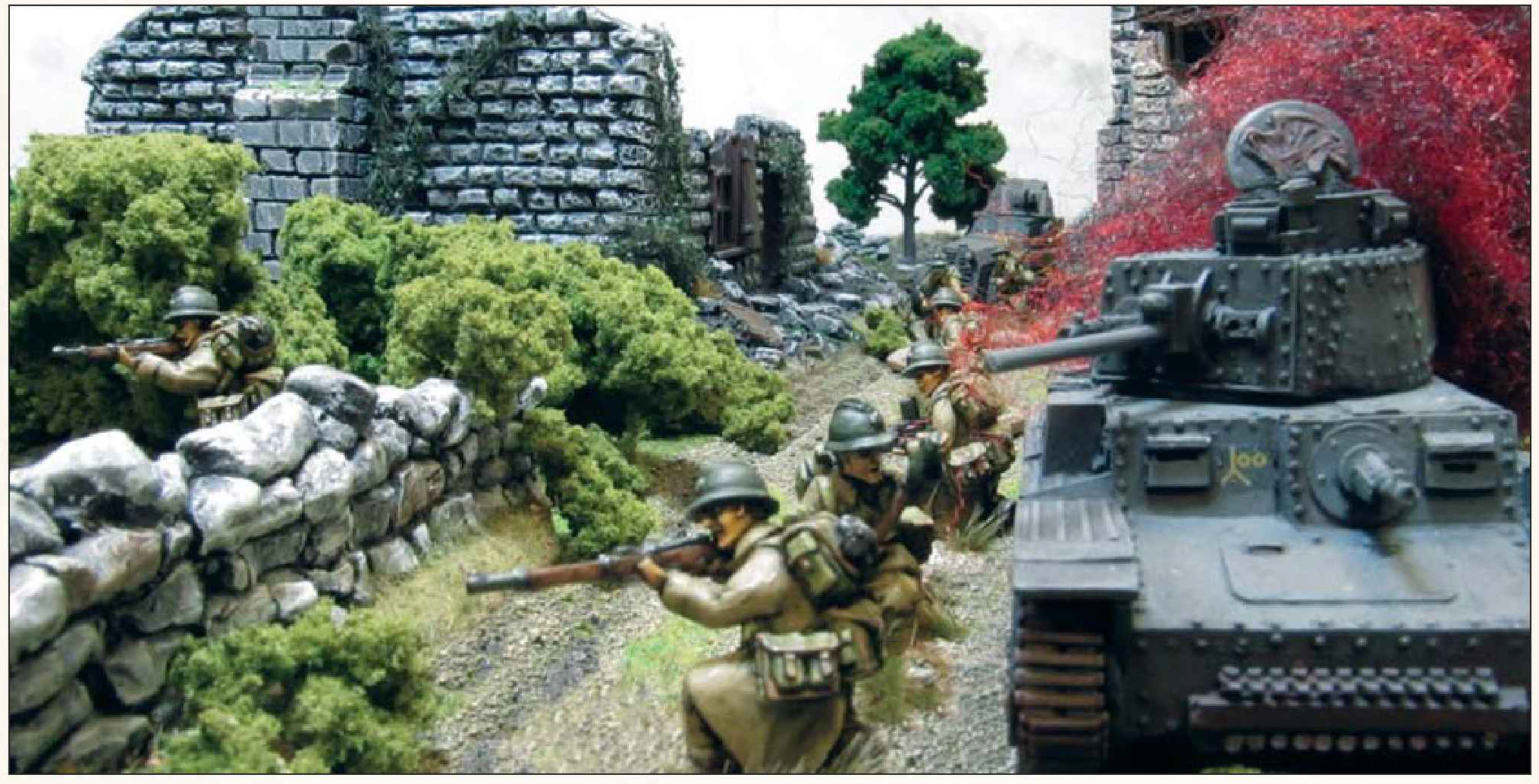 Each side will be given a round objective marker which they will place within the deployment zone and at least 3 inches away from thier table edge. 1 Charge (represented by a token) is given to your 3 mandatory platoon requirement (1 officer and 2 infantry squad).