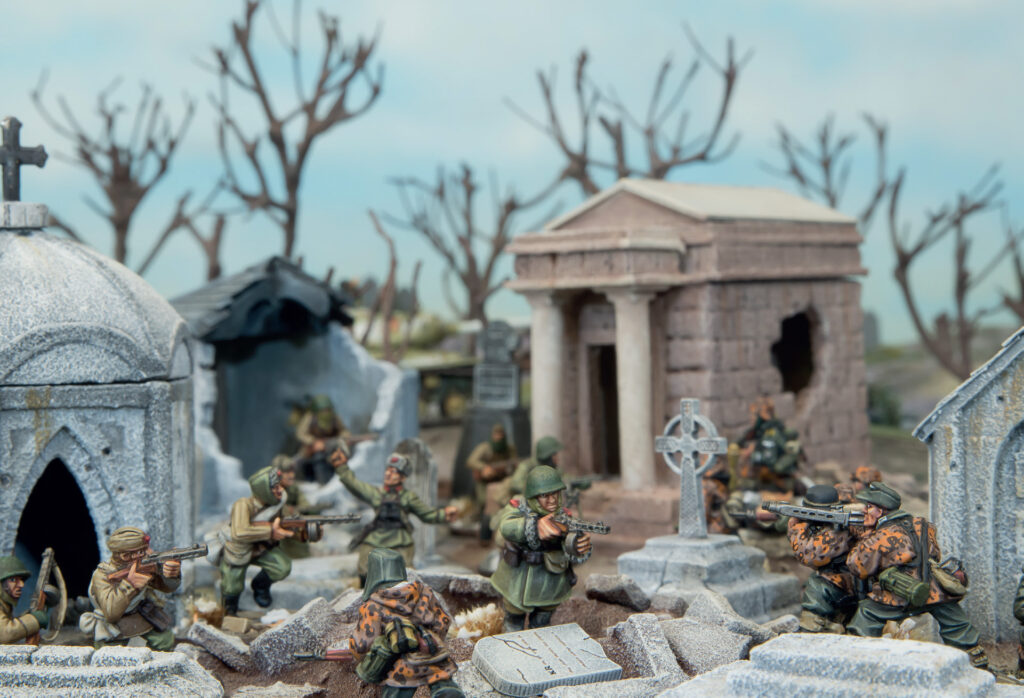 Bolt Action is, first and foremost, a game of infantry combat. As in real life, the majority of that tabletop combat takes place with small arms at short or medium ranges, with limited amounts of supporting assets in the form of armour and artillery. Historically, close-quarters action (by which I mean hand-to-hand fighting and point-blank shooting and grenade use) was comparatively rare, with only a tiny fraction of the total casualties in World War Two being attributed to bayonets or pistols and improvised weapons. Nevertheless, when such fighting did take place, it was usually decisive, with the losing side either surrendering or being wiped out completely – and the winners often not looking much better! In Bolt Action, we abstract this to a brutally simple equation: two units enter – one unit leaves (unless, of course, they manage to wipe each other out – then neither unit leaves)!