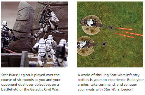 Star Wars: Legion invites you to join the unsung battles of the Galactic Civil War as the commander of a unique army filled with troopers, powerful ground or repulsor vehicles, and iconic characters like Darth Vader or Luke Skywalker. While innovative mechanics simulate the fog of war and the chaos of battle, the unpainted, easily assembled miniatures give you a canvas to create the Star Wars army you’ve always wanted to lead into battle—whether you fight for the monolithic, oppressive Galactic Empire or the ragtag Rebel Alliance.