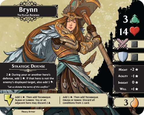 For example, Brynn now has access to the new Technique keyword, which grants her potent effects depending on which type of weapon she has equipped. Several of her new skills, such as Stand Fast and Counterswing , make judicious use of this keyword, giving Brynn even more tactical combat options than she had before!